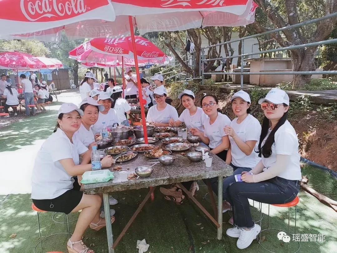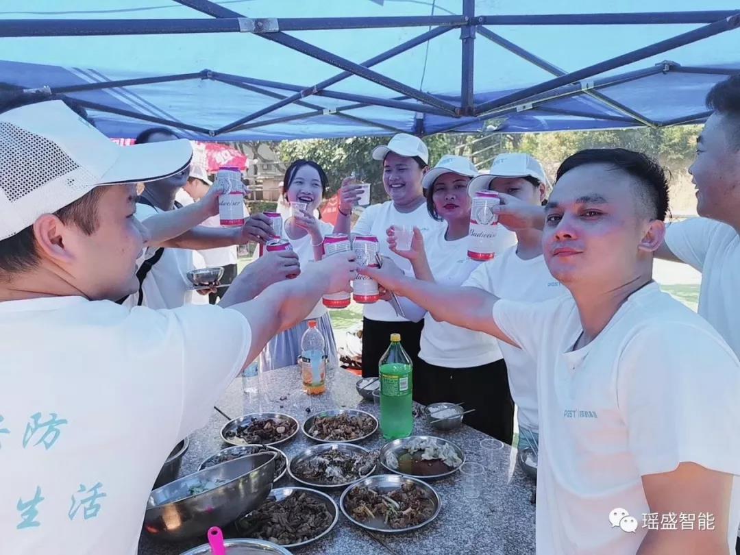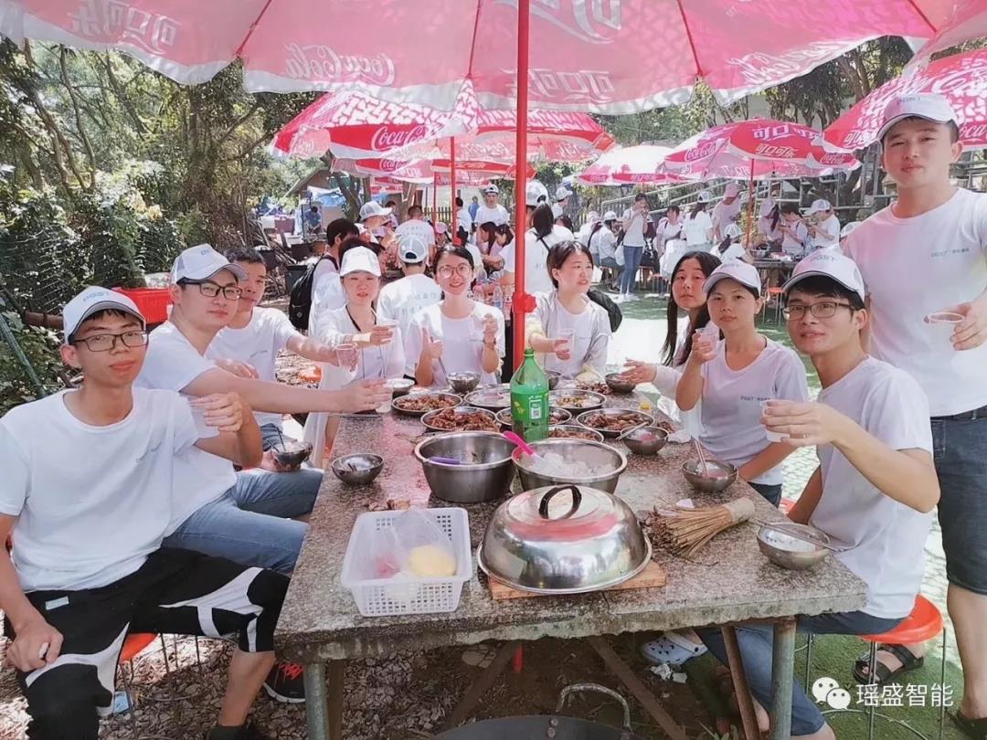 午餐時間,瑤盛智能的伙伴們齊心協力一起野炊。撿柴火、燒水殺雞、洗菜切菜、食物下鍋……伙伴們分工明確,配合得當,聊天嬉笑,歡樂無限。作為一個餐飲團隊,瑤盛小編對本次的野炊可是非常有信心的,在默契的團隊協作下,研發中心的黃師傅掌勺,不一會兒就做出了一桌桌色香味俱全的大餐,真心大飽口福呀,大家第一次在一起做一頓飯,是一個很不錯的體驗。