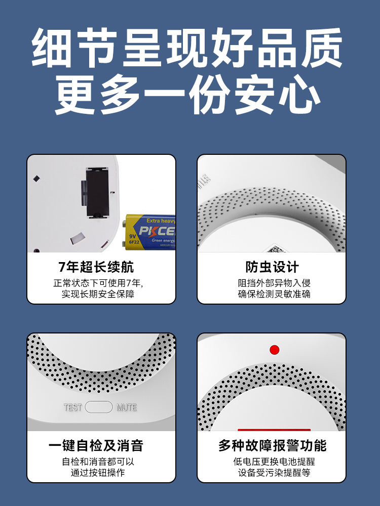 煙霧報警器 (型號PA-441) 產品規格 功能特點 資料下載 煙霧報警器 (型號PA-441)探測范圍:煙霧工作溫度:-10℃~ 55℃相對濕度:≤95%RH 不凝露探測范圍:煙霧報警方式:高音報警 聲光報警報警聲響:>80dB低壓報警:電池欠壓時,報警器發出無線低壓碼適用場景:適用于:倉庫、酒店、家庭工廠、商場、 影院、學校、公司
